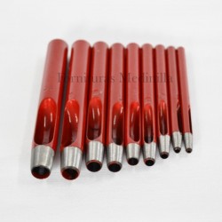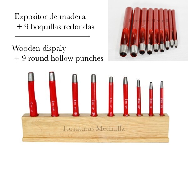 Set of hand punches with wooden display. Sizes 2-3-4-5-6-7-8-9-10 mm