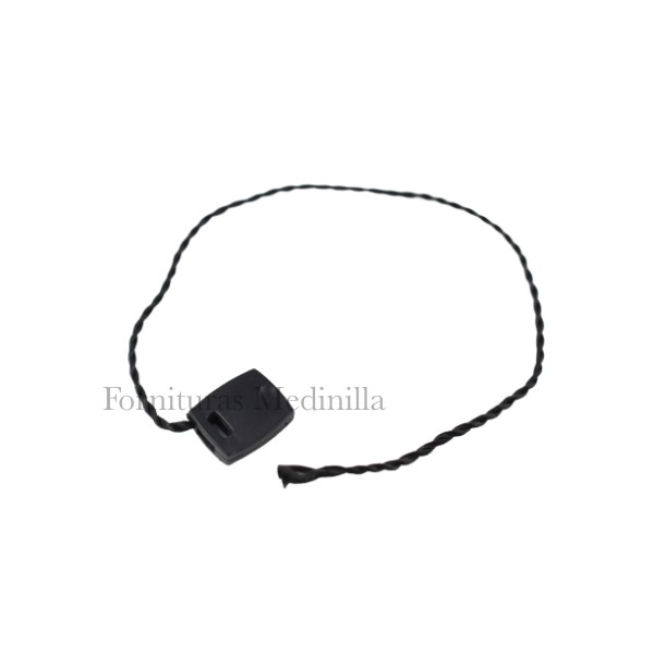 Thread with safety lock to hang labels.