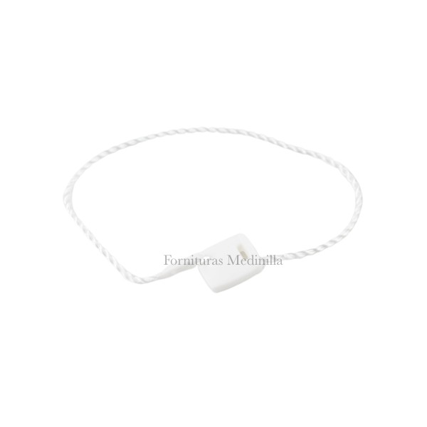 Thread with safety lock to hang labels.